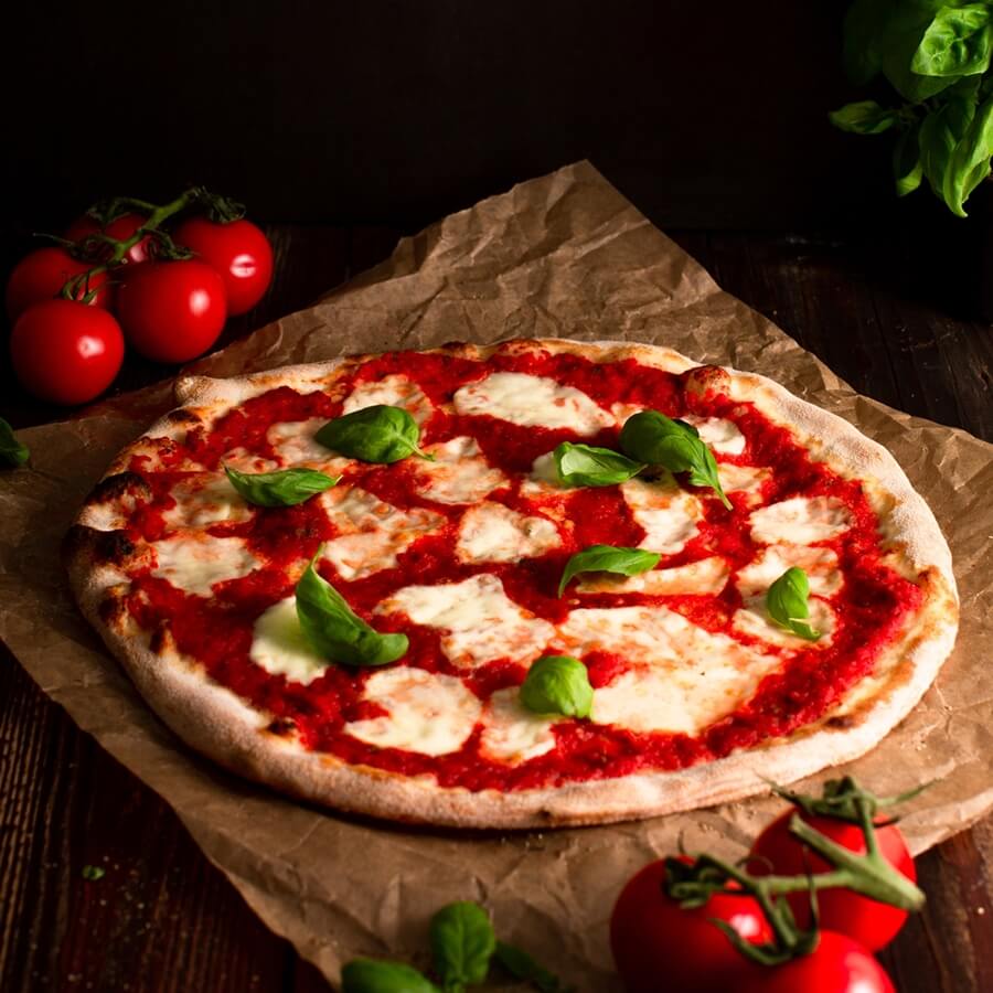 tomato, mozzarella, kukuřice, žampiony, paprika, brokolice