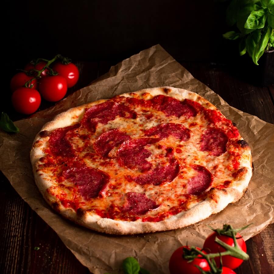 tomato, mozzarella, pikantní salám, feferonky